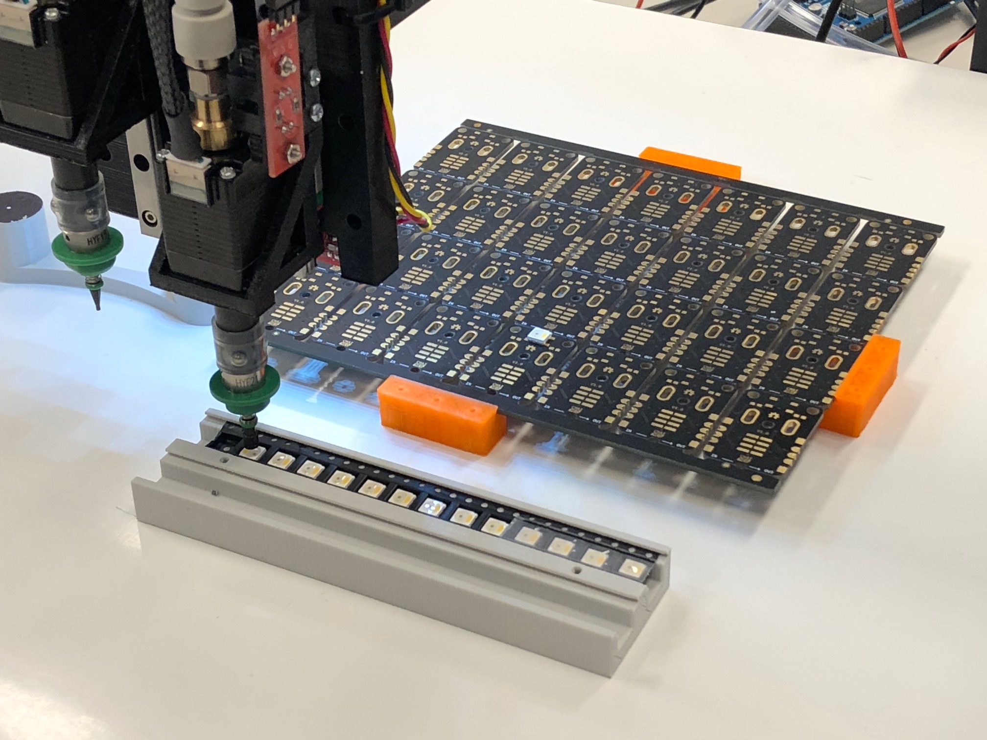 Live demonstratie van de automatische assemblage van printplaten voor onderwijs en onderzoek met behulp van een zelfgebouwde open source pick and place machine.