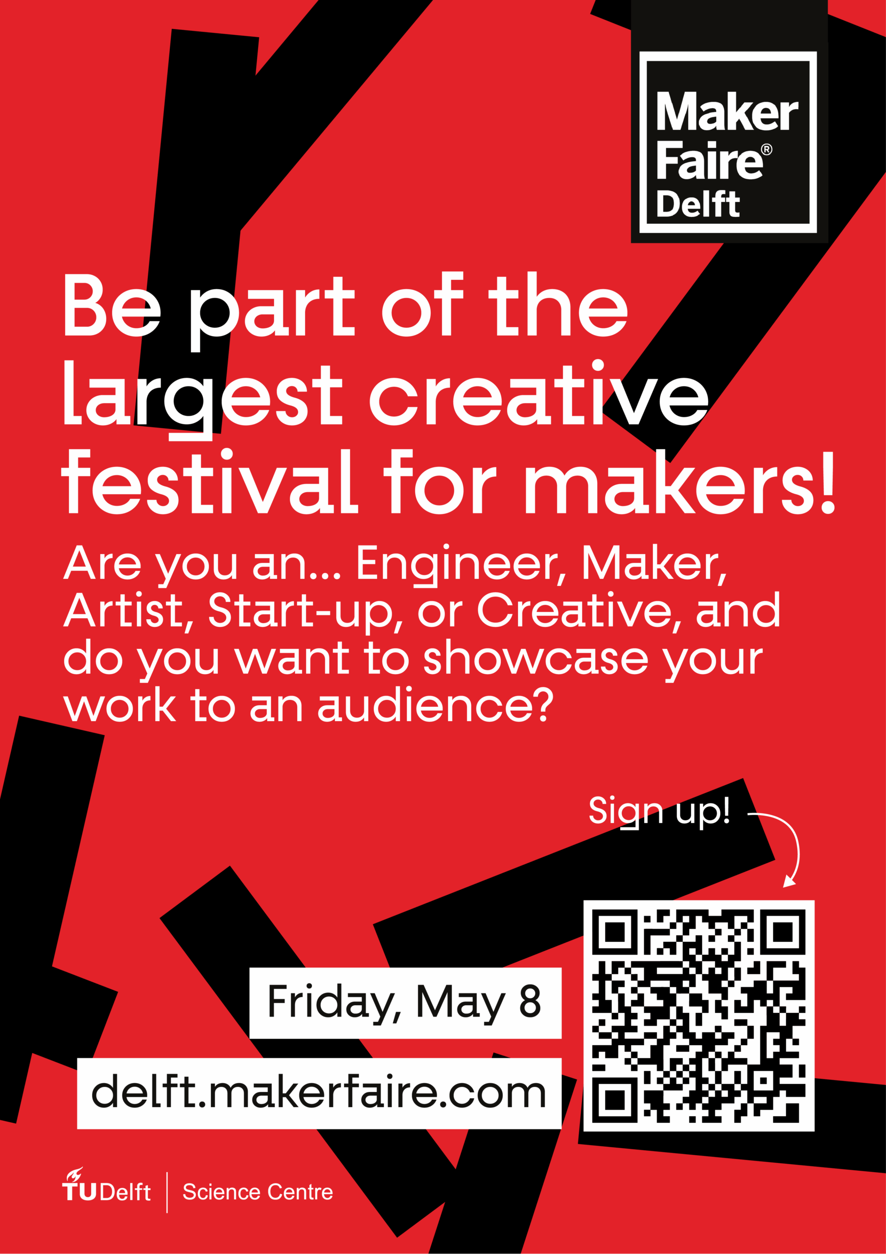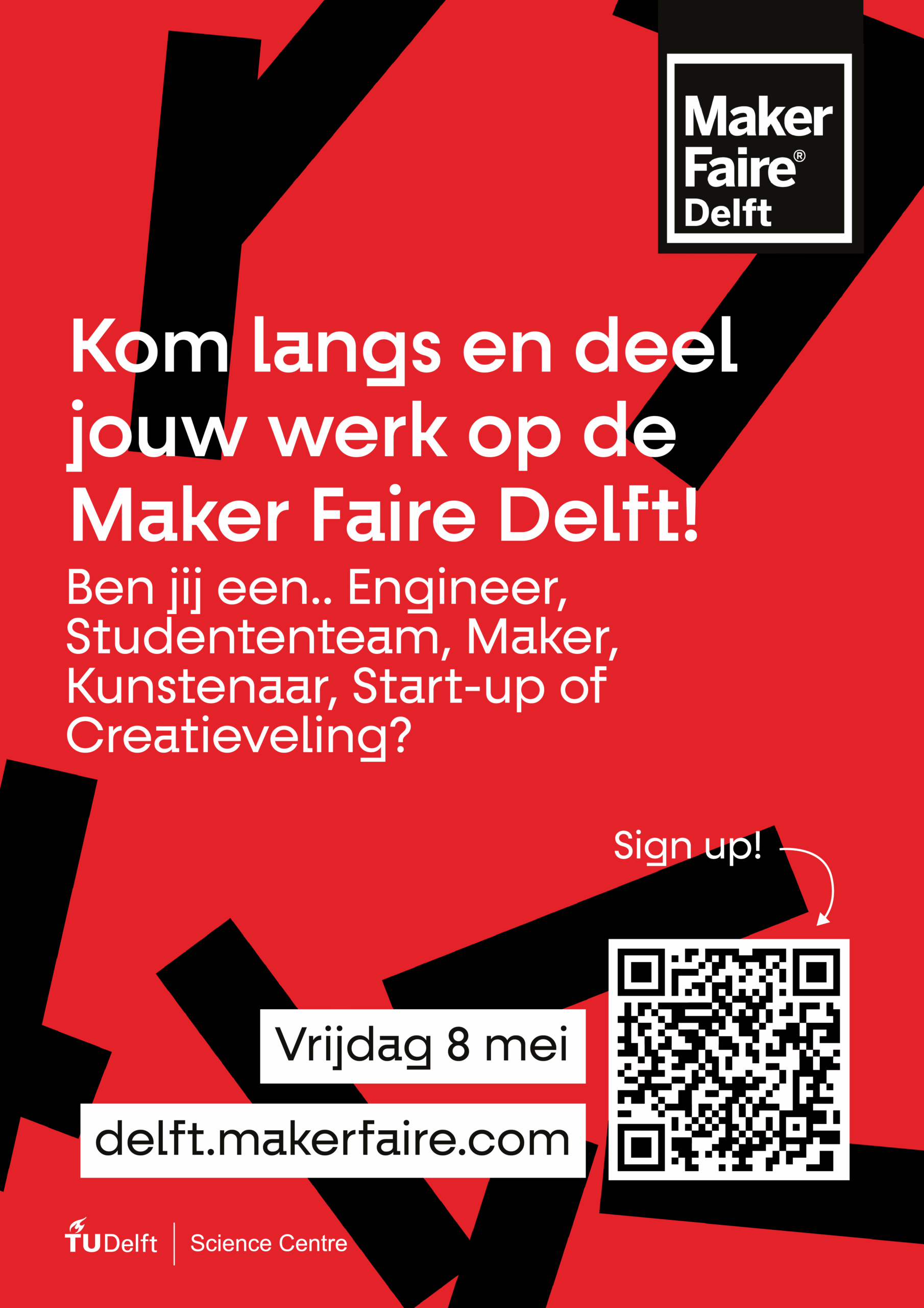 Ik ben een trotse Maker op de @Maker Faire Delft. Een initiatief van @TU Delft Science Centre. Bezoek tijdens dit maakfestival mijn eigen activiteit en check mijn persoonlijke Make-Page: delft.makerfaire.com/maker/entry/ (check de website voor je entry code, dit is jouw page). Met meer dan 100+ enthousiaste Makers belooft het een waar maakspektakel te worden vol workshops, demo’s, lezingen en entertainment.